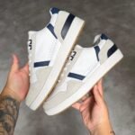Seu design conta com recortes e perfurações laterais, que remetem à herança do tênis no esporte e também ajudam na ventilação do pé. O solado de borracha proporciona aderência, estabilidade e conforto para o uso diário, enquanto os detalhes coloridos no calcanhar e nas laterais adicionam um toque moderno ao visual clássico.