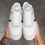 O Lacoste T-Clip combina elegância esportiva com um design inspirado nos clássicos tênis de quadra da marca. O modelo apresenta cabedal em couro sintético branco com detalhes em camurça, oferecendo um visual sofisticado e moderno. O icônico crocodilo bordado na lateral reforça a identidade da marca e traz autenticidade ao estilo.