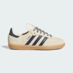 O design mantém as características tradicionais que consagraram o modelo: cabedal em couro premium com sobreposições em camurça na biqueira em formato “T”, além das icônicas três listras laterais. O solado de borracha natural (gum) oferece excelente tração e reforça o visual retrô que tornou o Samba um sucesso ao longo das décadas.