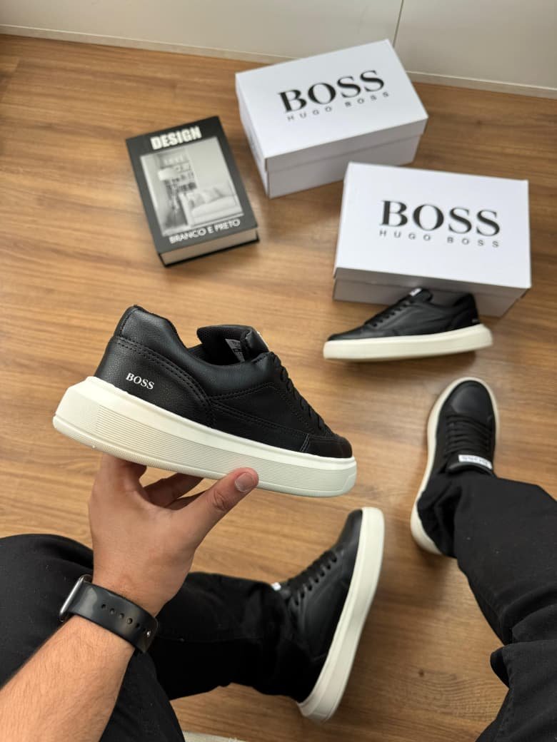 O sapatênis Hugo Boss combina elegância e casualidade em um único modelo, sendo ideal para quem busca um visual sofisticado sem abrir mão do conforto. Produzido pela Hugo Boss, ele se destaca pelo acabamento premium e design minimalista, perfeito para compor looks modernos e versáteis.