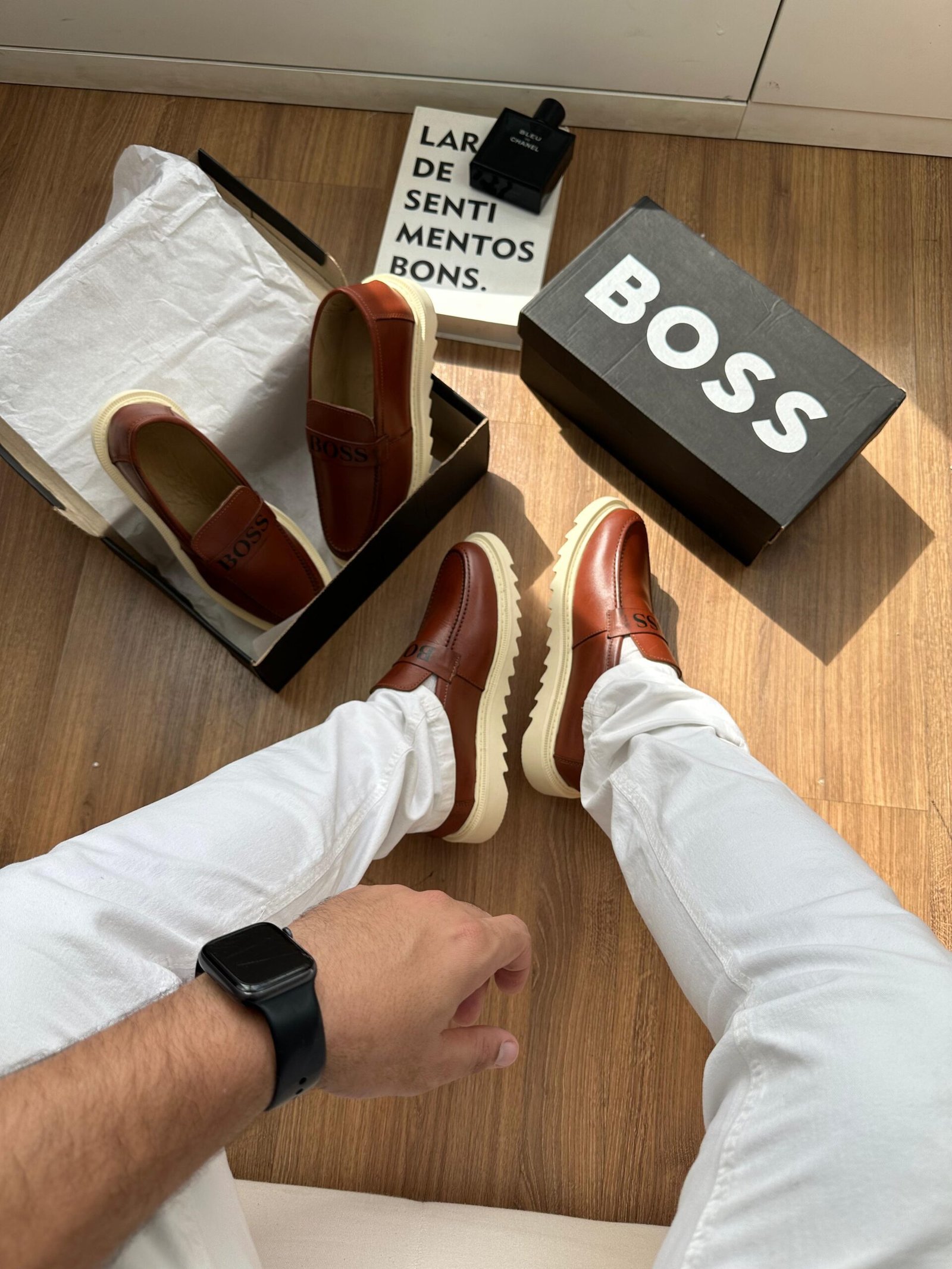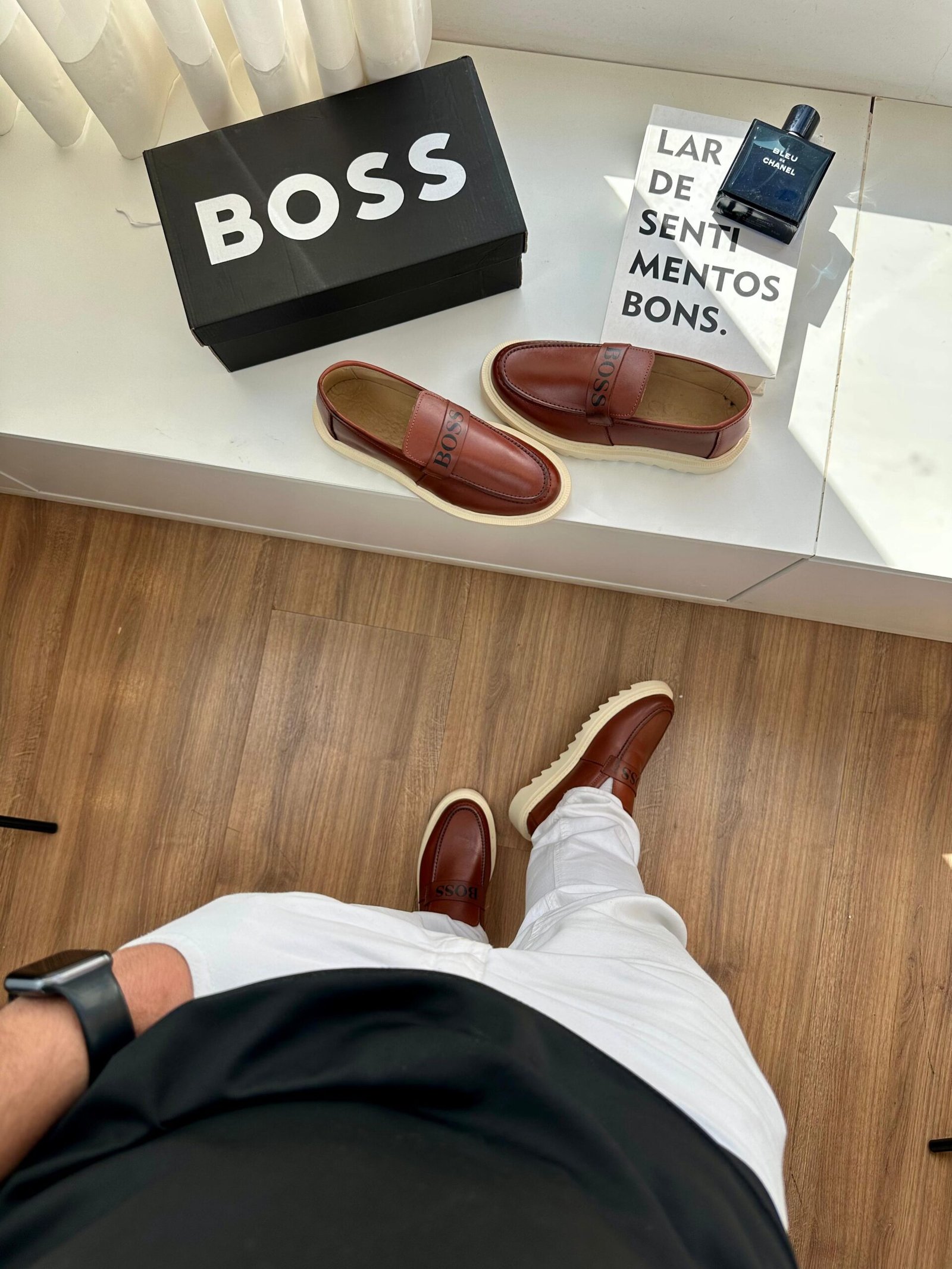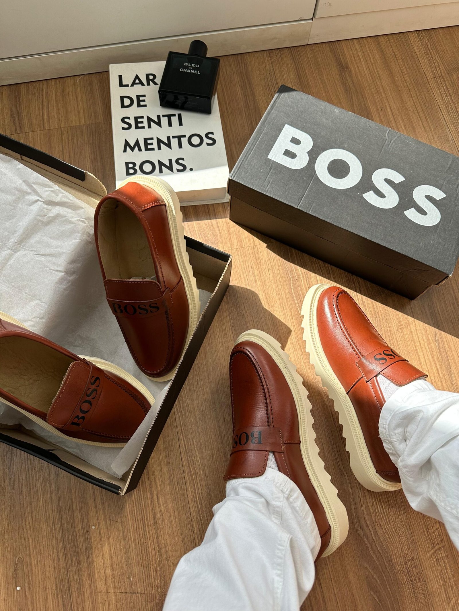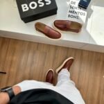 O mocassim Hugo Boss é confeccionado com materiais premium, como couro legítimo macio e acabamento refinado, proporcionando durabilidade e um ajuste confortável aos pés. Seu design minimalista e elegante traz linhas limpas, costuras discretas e o logo da marca aplicado de forma sutil, reforçando o estilo moderno e luxuoso característico da Hugo Boss.