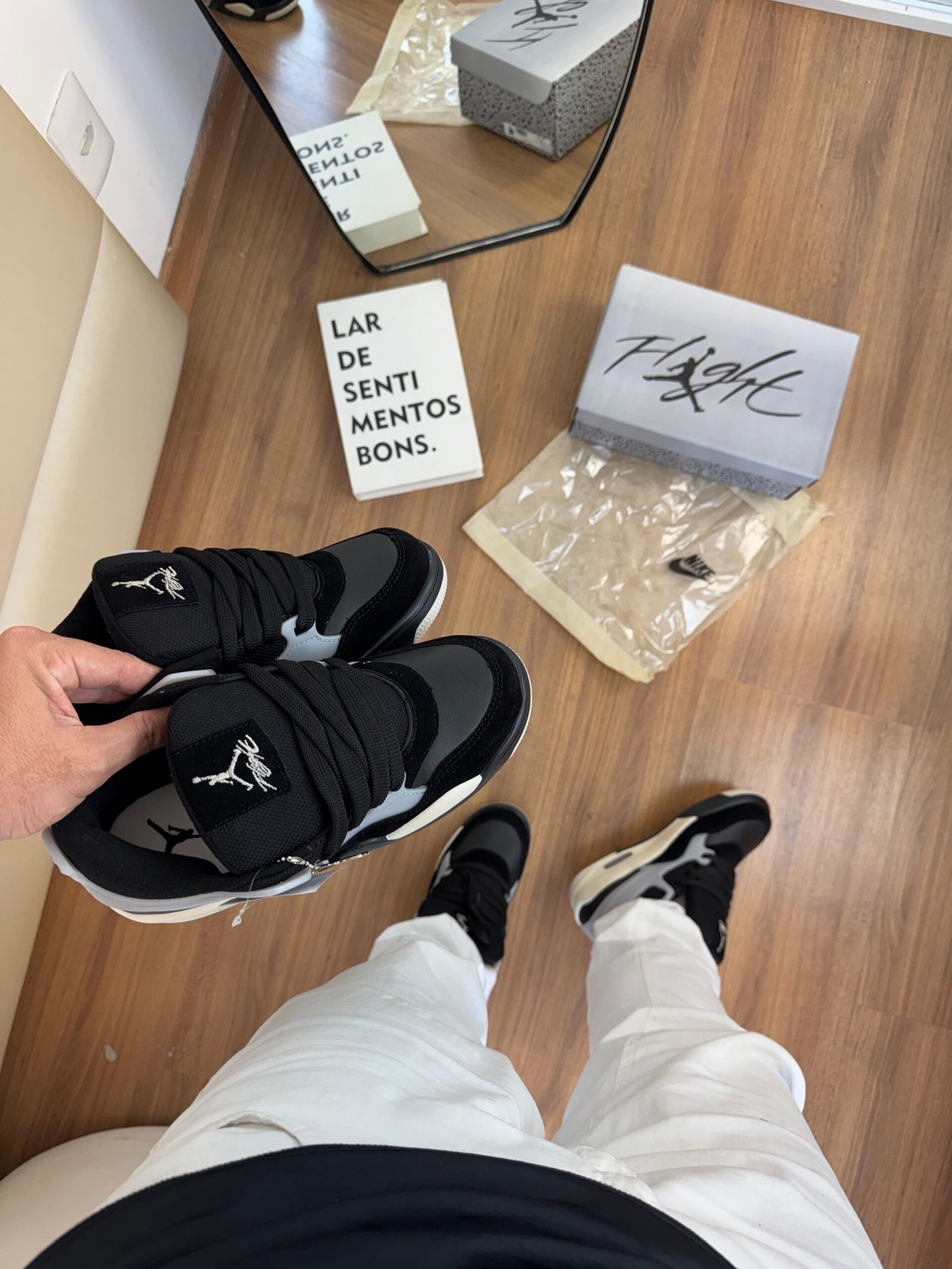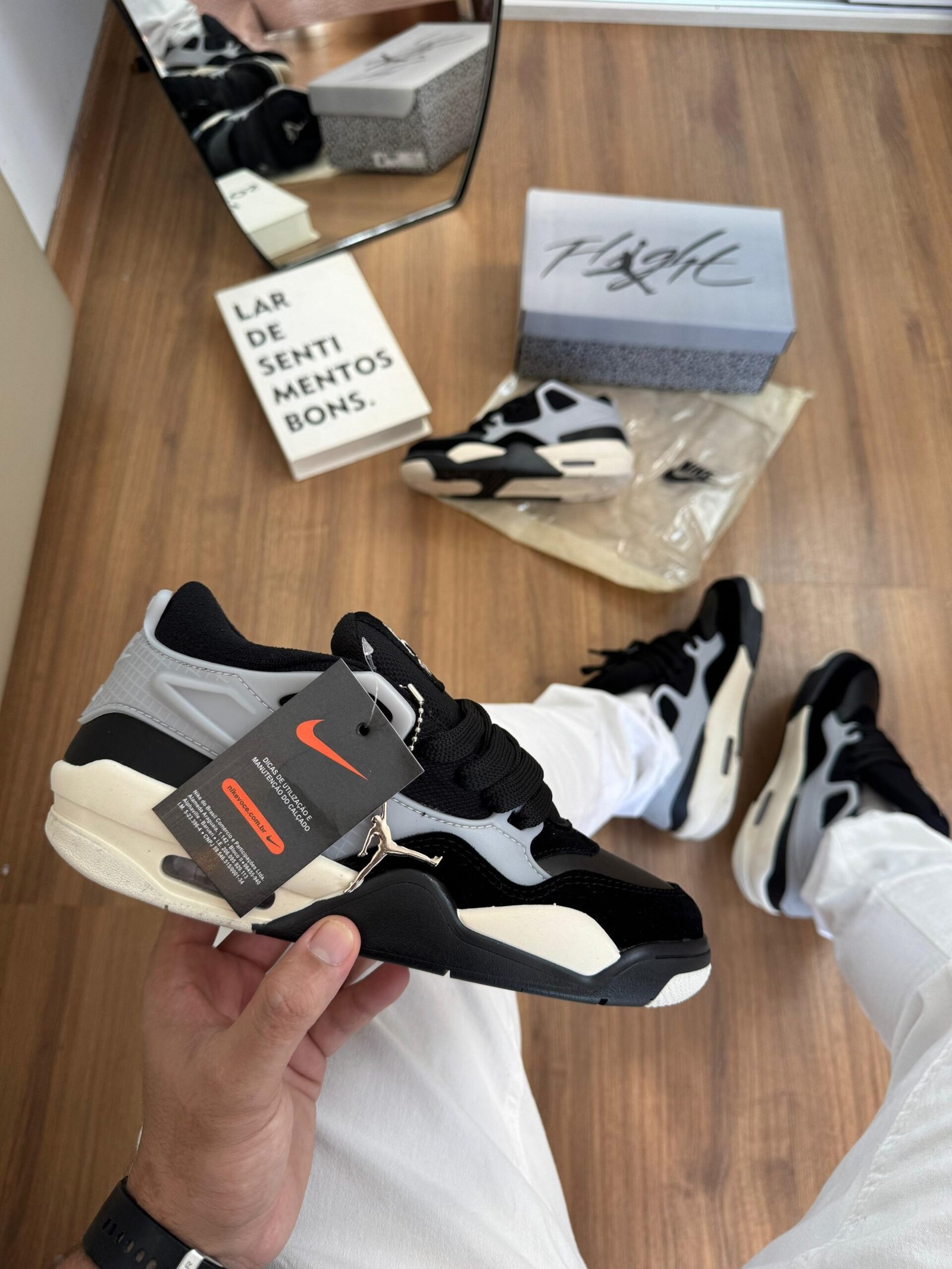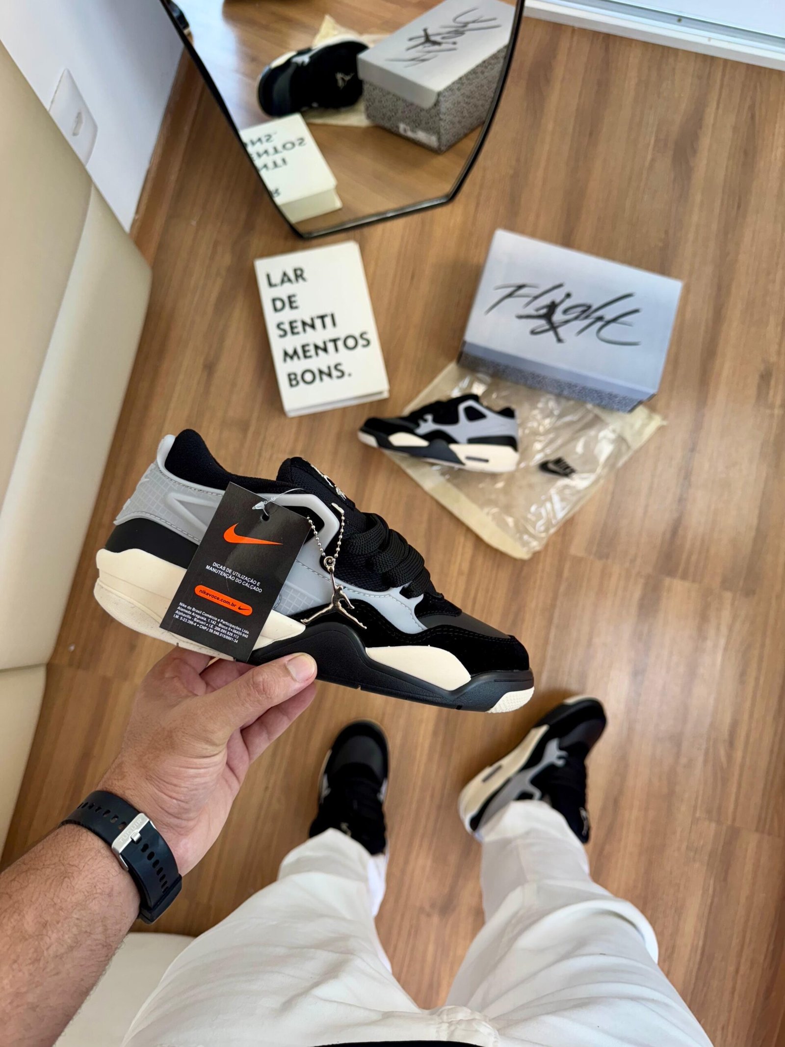 O grande destaque do Jordan 4RM está no seu visual: linhas marcantes, estrutura moderna e detalhes que remetem ao legado da linha Jordan, tornando o modelo perfeito pra quem quer se destacar no estilo sem abrir mão do conforto.