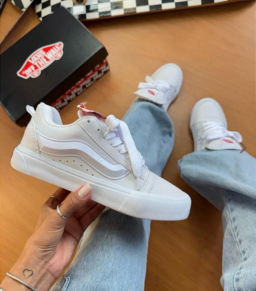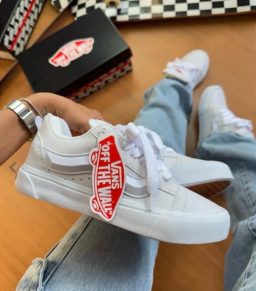 O Vans Knu Skool é uma releitura moderna dos clássicos tênis de skate dos anos 90, trazendo um visual robusto, retrô e cheio de atitude. O modelo apresenta cabedal resistente em camurça, além da icônica faixa lateral Vans em versão 3D, que reforça o estilo marcante da silhueta.